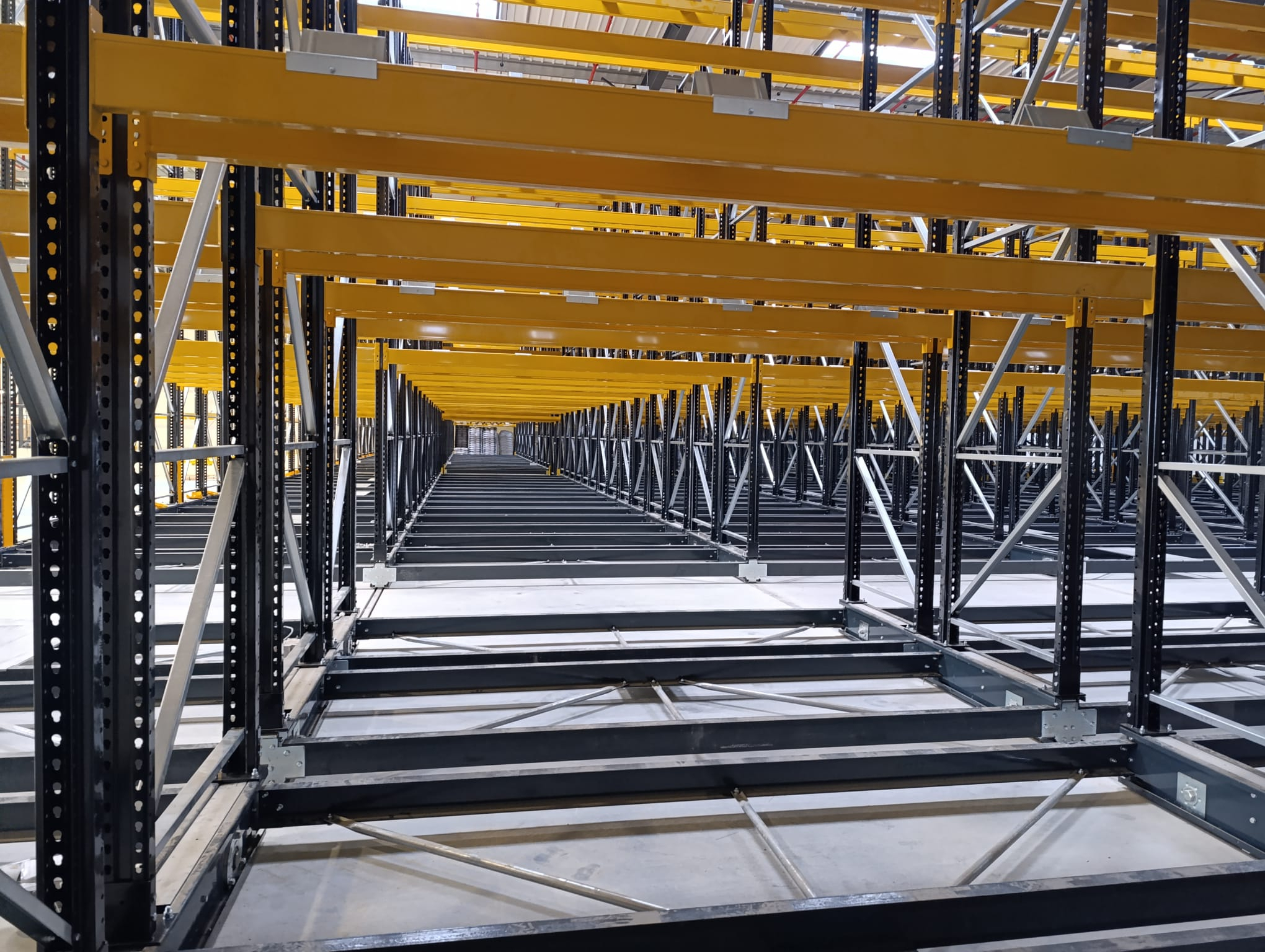 V roce 2025 jsme zahájili spolupráci s novým klientem Polypal ve Francii, kde potřebovali ve městě Toulouse zrealizovat stavbu mobilního regálového systému, včetně elektrifikace. Projekt probíhal ve dvou fázích – nejprve proběhla instalace kolejnic, která trvala 3 týdny a podílelo se na ni 6 našich pracovníků. Ve druhé fázi proběhla samotná montáž regálových systémů. Celý projekt byl dokončený úspěšně a ve stanoveném čase k plné spokojenosti zákazníka. A to je pro nás nejdůležitější. In 2025 we started working with a new client Polypal in France, where they needed to build a grain racking system including electrification in Toulouse. The project was carried out in two phases - firstly the installation of the rails, which took 3 weeks and involved 6 of our staff. The second phase was the actual installation of the racking systems. The entire project was completed successfully and within the time frame to the full satisfaction of the customer. This is the most important thing for us.